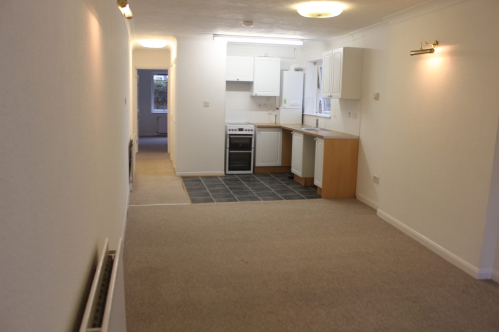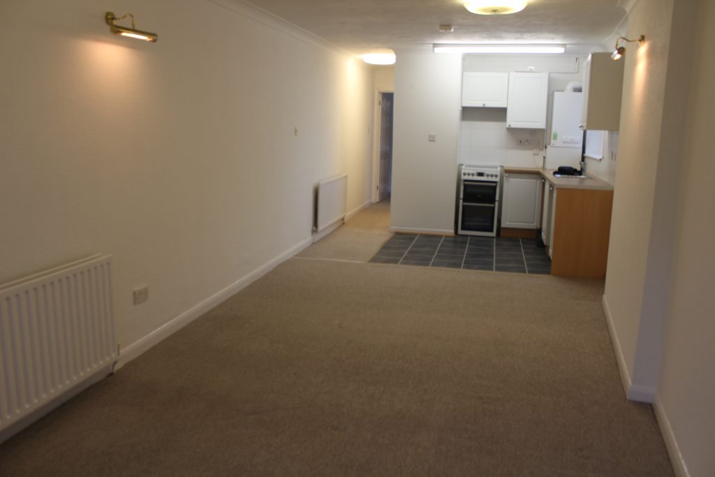 This one bed spacious bungalow cottage has a private rear garden and a front garden leading into the vestibule and then into the living room with new carpets. The open plan kitchen has a range of storage cupboards, space for cooker, plumbing for a washing machine and space for fridge/freezer. The hall has a range of fitted cupboards. The bathroom is fitted with a suite comprising of bath with shower fitment, hand wash basin and toilet. The bedroom is a spacious double with doors leading out to the private walled garden. Located within a short walk of The Arndale Centre. The owner will allow one pet. There is a good size parking space