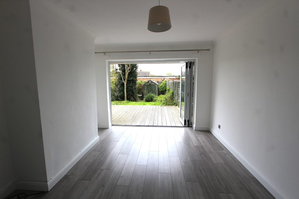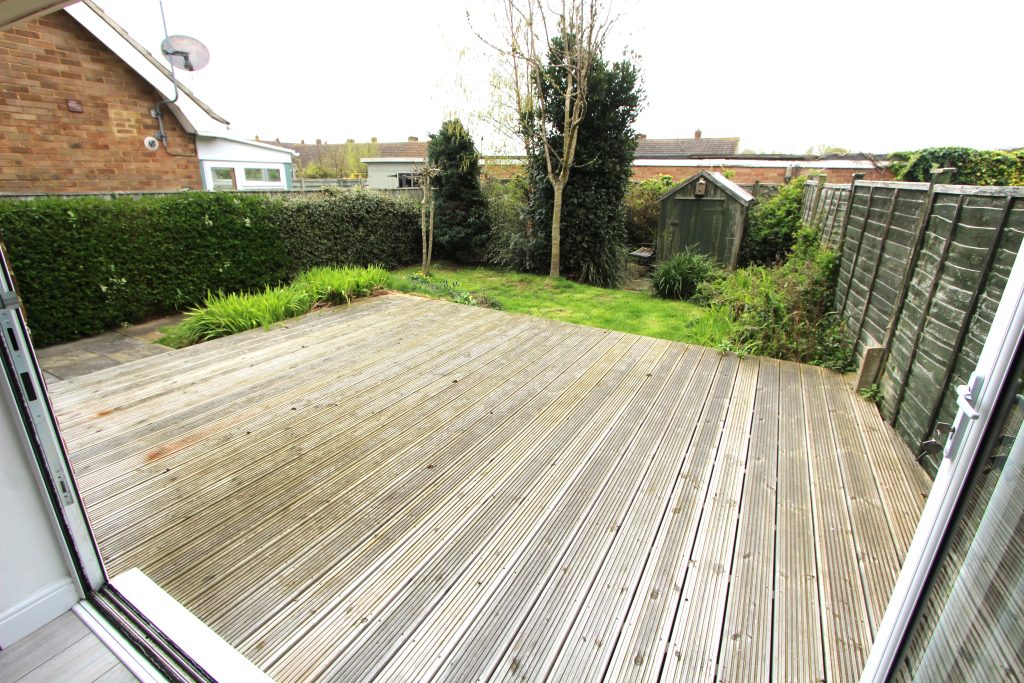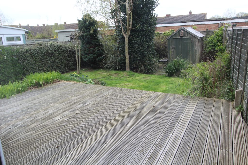 The approach to this property is through a front garden path to front door. leading into small entrance vestibule then through to the hall with fitted storage cupboard. The living room has by fold doors leading out to a decking area and garden beyond. There is also a radiator. The kitchen is fitted with a range of wall and floor mounted units, space and plumbing for washing machine and dish washer, space for fridge/freezer, fitted 4 ring gas hob and electric coven under. There is a rear door leading out to the side of the property. The main bedroom is a good size double with radiator, and the second bedroom is a double. The bathroom is modern and fitted with hand wash basin, toilet, bath with shower fitment above, and heated chrome towel rail. There is a lawned front garden The rear garden with decking, and lawn area with shed. Gate leads out to the side area.